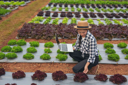 Inspection of vegetable garden quality by farmers using modern agricultural technology concepts.