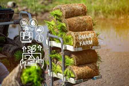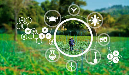 Technology in Agricultural field, cultivated and plantation with futuristic smart objects.