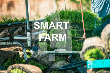 Agriculture technology. Smart farm with agricultural machinery. Agricultural machinery in the greenhouse.