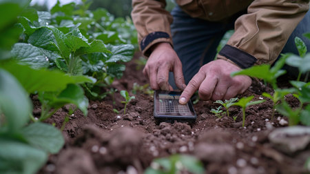 A farmer uses a smartphone to check agricultural data on an organic farm, highlighting modern technology role in enhancing crop monitoring and management.