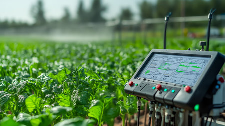 A digital monitoring system used in agriculture, overseeing healthy crops in a field setting
