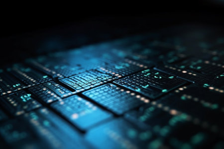 Close-up view of abstract digital data lines with vibrant colors, creating a futuristic and technological visual effect.