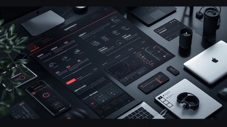 A diverse assortment of electronic devices and accessories is neatly arranged on a flat surface. Items include tablets, smartphones, keyboards, and speakers, showcasing modern technology.