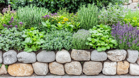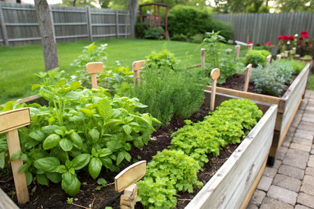A neatly organized herb garden bed outdoors