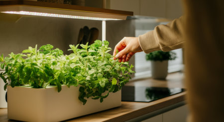 Sprouts and cultivation of herbs under grow lights