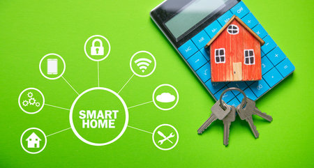 Mobile phone with app smarthome intelligent house automation remote control technology concept