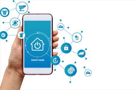 Smart home control with smartphone, smart home app. Lifestyle of person in modern life internet of things, Smart house technology.The new innovation of life.