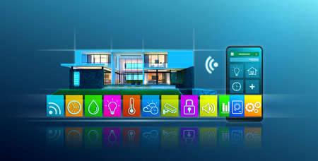 Smart home, Control electronic devices using mobile phones, operating system concept of future.