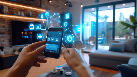 Smart Home Technology Concept with Digital Interface and Connected Devices