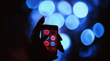 Reflection of light effects on mobile phone at a concert (Gadgets, new device, updates - concept)