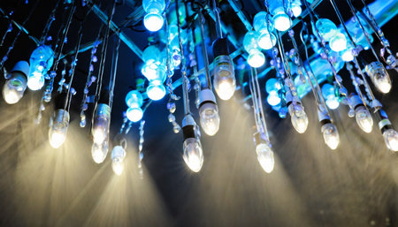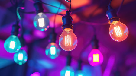 A row of glowing electric lamps in a brightly lit background generated by artificial intelligence