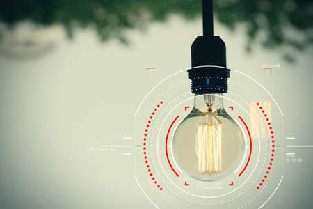 Concept of focus on target with digital diagram,graph interfaces,virtual UI screen,connections netwoork with grow lightbulb