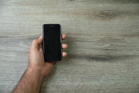 Mobile phone with blank screen or copyspace to put content in the project. black mobile phone with blank desktop screen