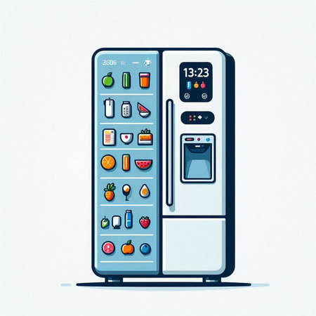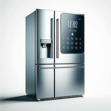 This modern refrigerator features a sleek design with energy-efficient technology and a user-friendly touch screen, perfect for contemporary kitchens and smart homes.