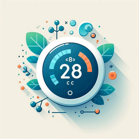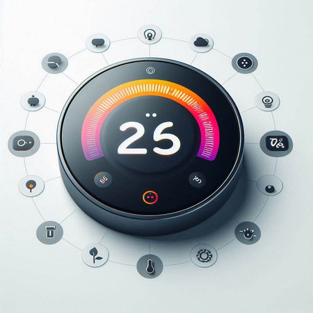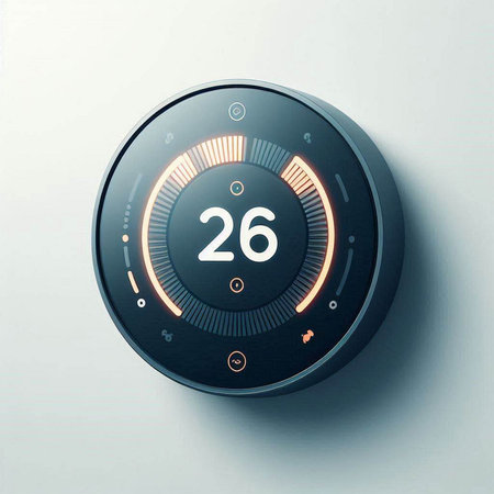 Modern round thermostat showing temperature allowing to increase or decrease setting