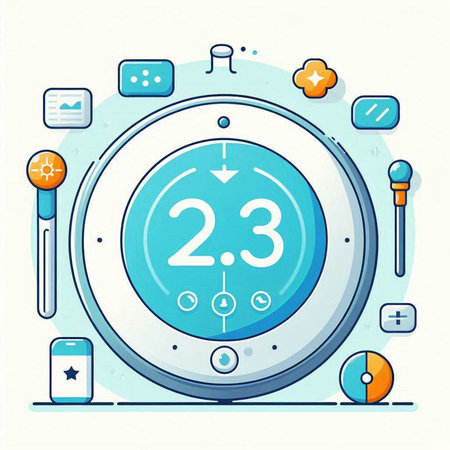 Colorful flat vector illustration of a measuring device with the number 33 on the screen.