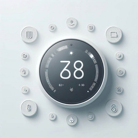 A smart thermostat is set to 78 degrees in a contemporary home, showing its advanced features and design.