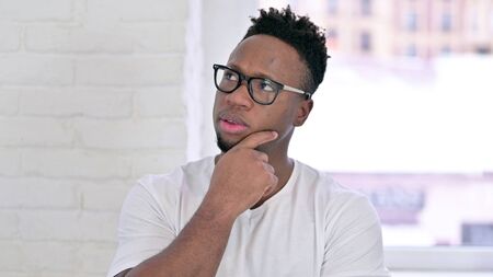 Handsome unsure, doubtful black man thinking, looking up with dubious expression on his face