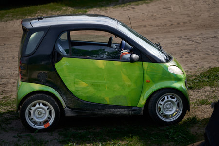 Mulhouse - France - 1 September 2019 - Closeup of front view of white smart car parked in the street