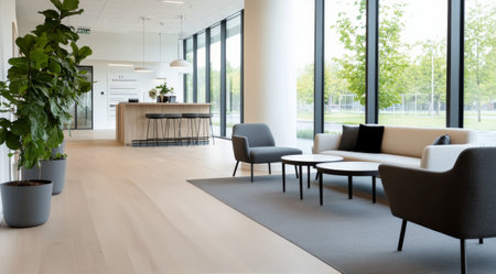 Inspiring office interior design Scandinavian style Corporate Office with Open Space Design featuring Natural elements architecture. Generative AI AIG 31.