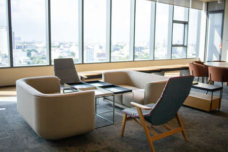 Bangkok, Thailand - June 2020 : Area of True digital park Co-Working Space on social distancing with luxury comfortable design for work as free and relax. Concept of creative cooperate work space.