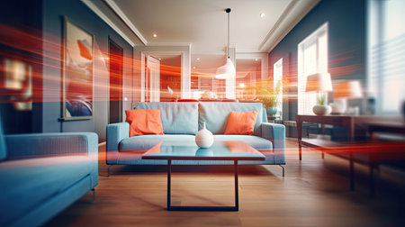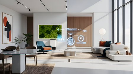 smart home with voice-activated lights and temperature control, featuring sleek design and advanced technology, created with generative ai