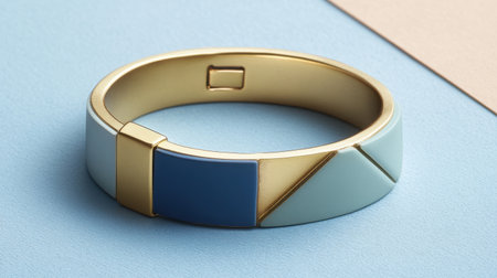 Stylish geometric bracelet featuring blue and gold accents set against a soft blue backdrop, perfect for showcasing modern fashion aesthetics.
