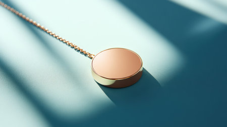This image showcases an elegant rose gold pendant resting on a soft blue surface. The interplay of shadows and highlights creates a calming and sophisticated atmosphere, making this piece ideal for fashion and jewelry presentations.