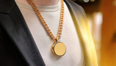 Gold pendant on the neck of a mannequin close up