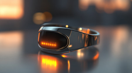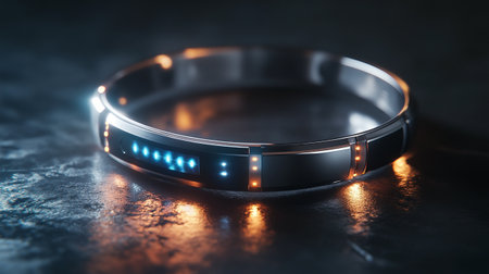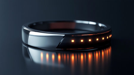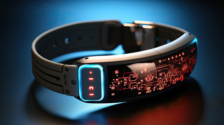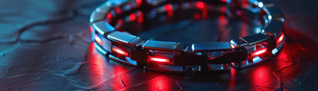A modern bracelet with red LED lights showcasing a sleek, futuristic fashion accessory on a dark background.