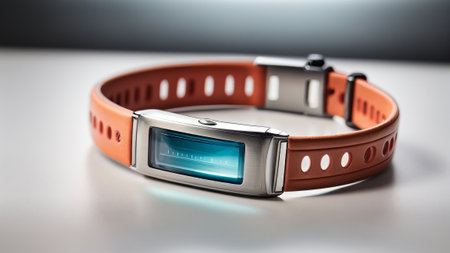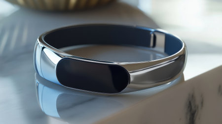 Sleek Band Design A closeup of a polished smart wearable band highlighting its smooth contours and interchangeable s feature. The seamless integration of the devices sensors into th