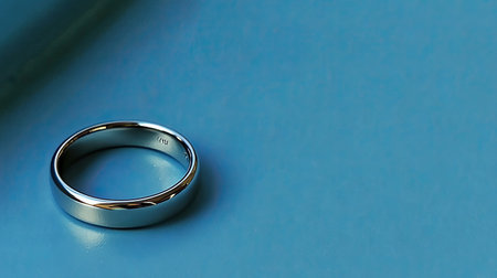 photo of a metallic silver ring with a minimalist design, lying on the lower-left of an empty sky blue background. The ring reflects subtle highlights while leaving the top area open for text, isolated on sky blue background --no people man woman --chaos 12 --ar 16:9 --style raw --stylize 250 --weird 150 --v 6.1 Job ID: a4b0c4b9-6152-43c9-88ac-9778a76287fd