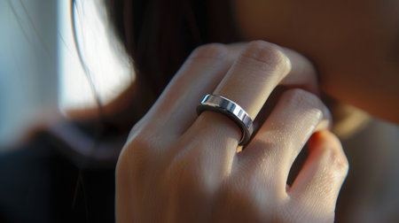 Close Up of a Silver Ring on a Womans Finger