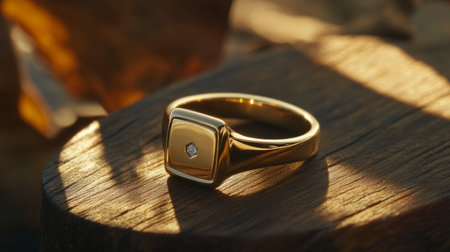 Modern Signet Ring with Square Face, Engraved Monogram and Small Diamond Insert, Yellow Gold generative ai