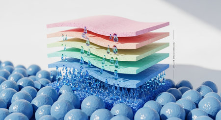 Swatches showing layered fabric swatches demonstrating moisture absorption with droplets and spheres. resolution use.