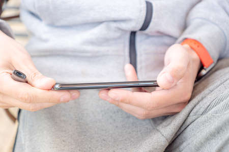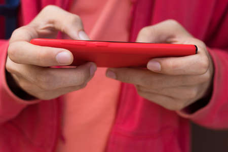 Closeup of Person Using Mobile Phone. Lifestyle of Modern People. Front View. Selective Focus on Smartphone