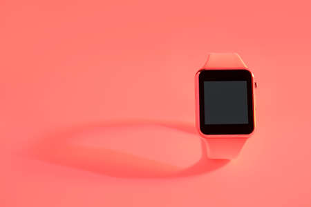 Smart bracelet on blue-pink background. minimalism. trendy shadow. creative layout.