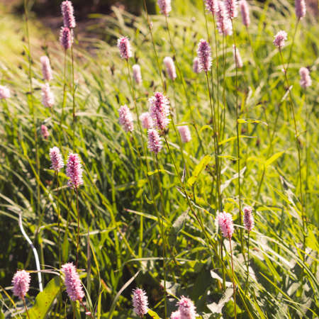 Flowers of Bistorta officinalis known as bistort, in the garden.
