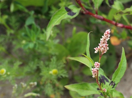 Creeping smartweed flowers. Polygonaceae annual weed. From June to November, reddish-purple florets are densely attached to the spikes.