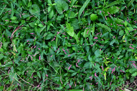 The medicinal plant Polygonum hydropiper blooms in the garden.