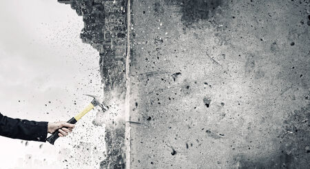 Close up of female hand crashing wall with hammer