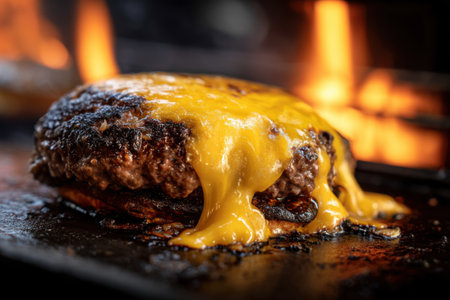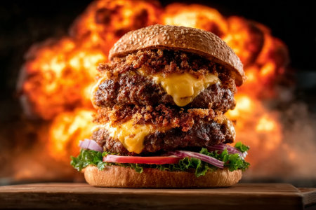 AI Generated. A Delicious Cheeseburger Flames Background