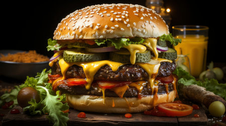 Gourmet juicy cheeseburger with bacon and fresh lettuce - a gastronomic delight
