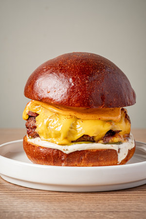 AI Generated. Juicy Hamburger with Melting Cheese and Fresh Bun