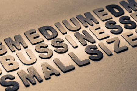 Business topic in the row of wood letters with part of Medium and Small Size word (SMB)