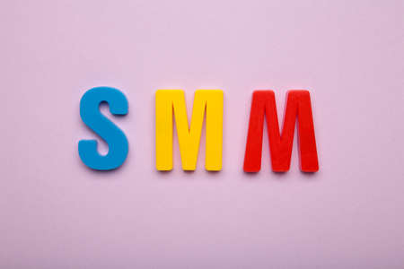 SMM, social media marketing symbol. Concept word SMM social media marketing on purple background. Business, SMM social media marketing concept. top view