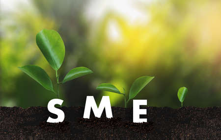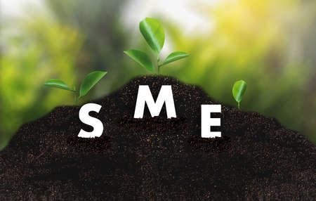 SME text (Small Medium Enterprise) wooden cube blocks on table background. Financial, Investment, marketing, startup and business concepts