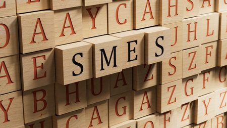 Small and medium-sized enterprises Word Written In wooden blocks.close up of wooden blocks,Business Concept.3D rendering.