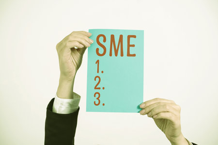 Handwriting text Sme. Internet Concept small to midsize enterprise maintain revenues asset number of employee