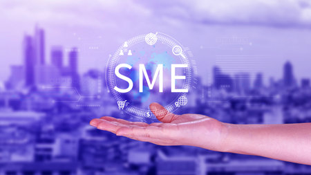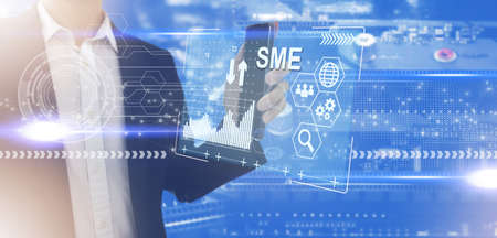 SME concept of business, Business, technology, internet and network concept, Virtual screen of the future and sees the inscription SME.